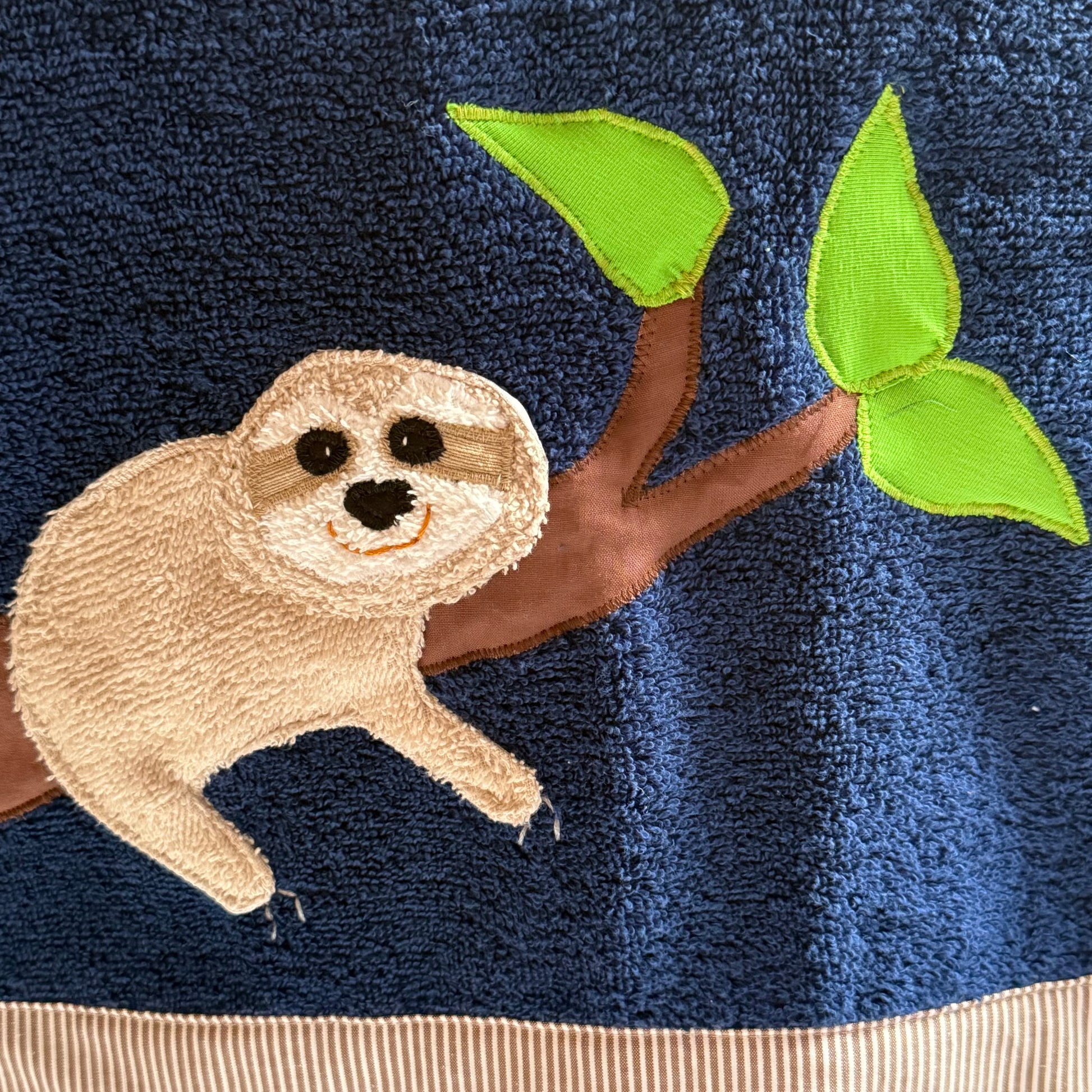 Duschtuch Faultier personalisiert – Handtuch mit Namen & Stickerei | Hochwertige Baumwolle