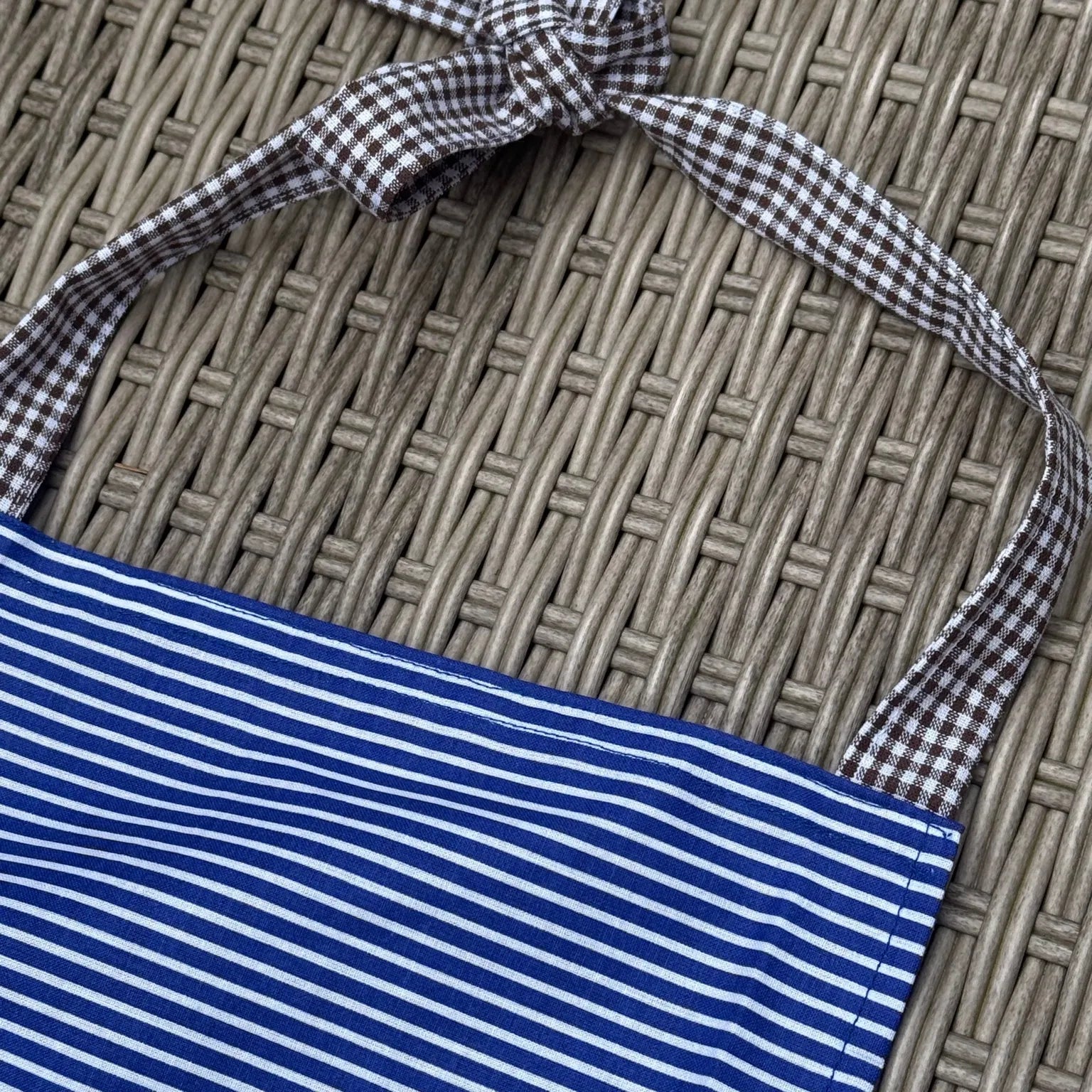 Mit dieser liebevoll genähten Kinderschürze macht Backen, Kochen und Basteln gleich doppelt so viel Spaß! Die blau-weiß gestreifte Schürze aus 100 % Baumwolle ist perfekt auf Kinder im Alter von 5–7 Jahren abgestimmt und schützt Kleidung zuverlässig vor Mehl, Farbe & Co.