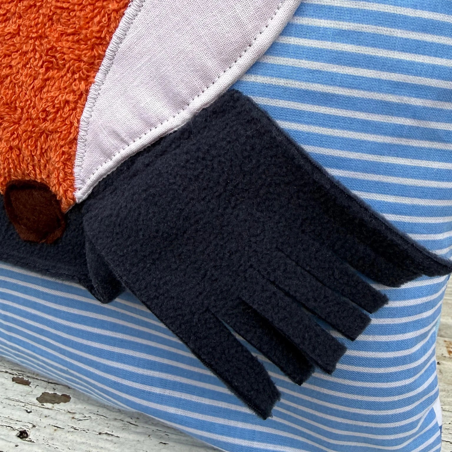 - Design: Niedliche Fuchs-Applikation mit gepunktetem und gestreiftem Stoff