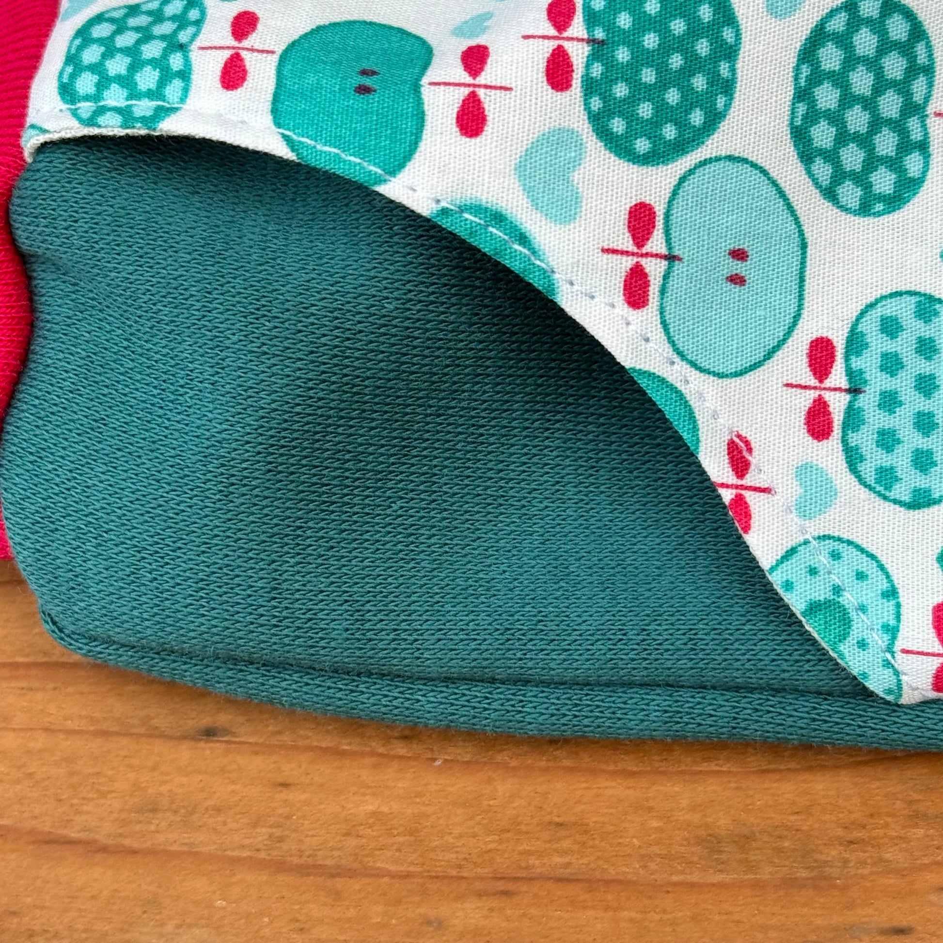 - Fröhliches Apfelmuster auf den Taschen als Hingucker