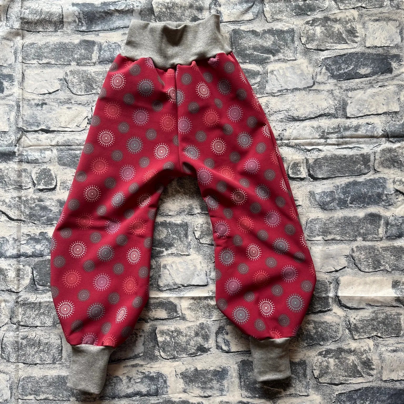 Regenhose aus Softshell – bordeaux mit Blumenmuster
