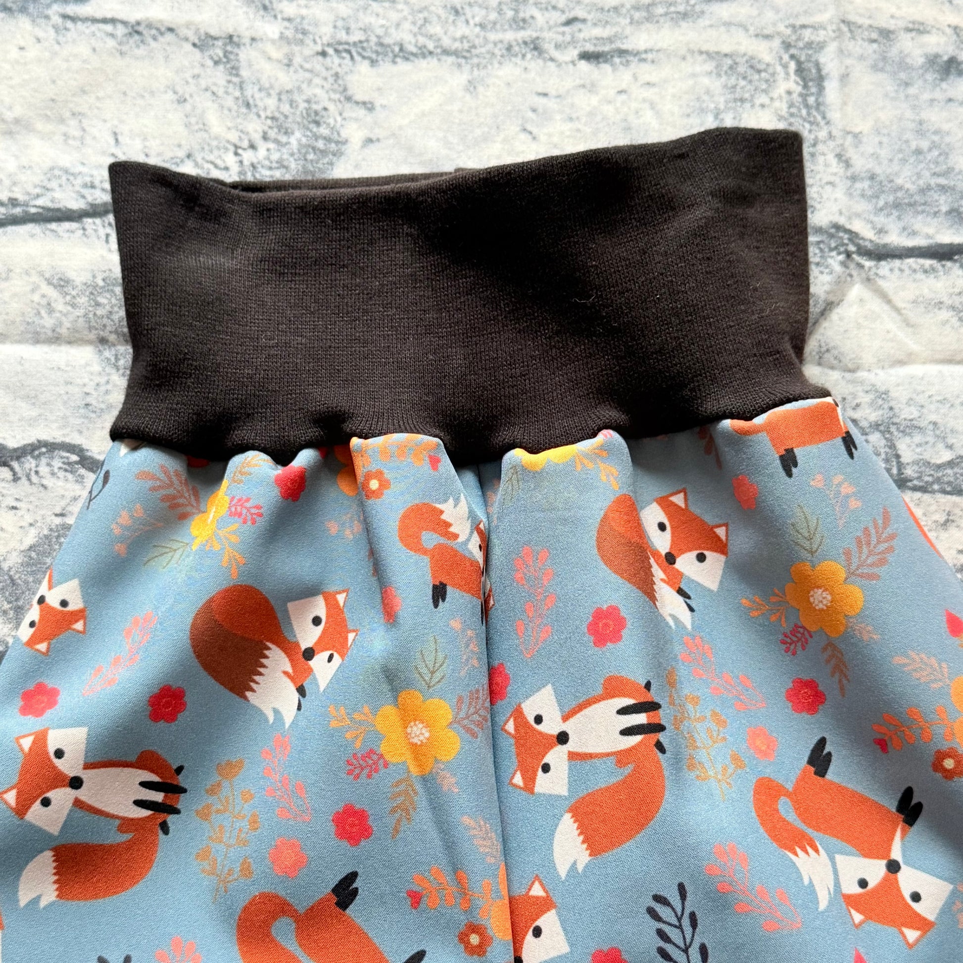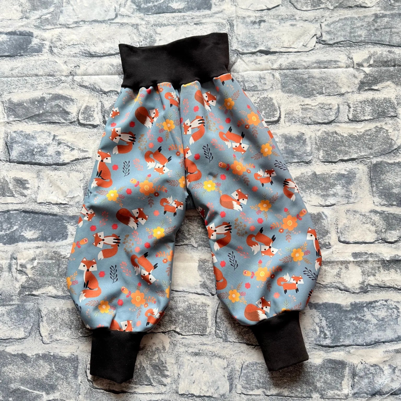 Regenhose aus Softshell – grau mit Fuchs-Muster