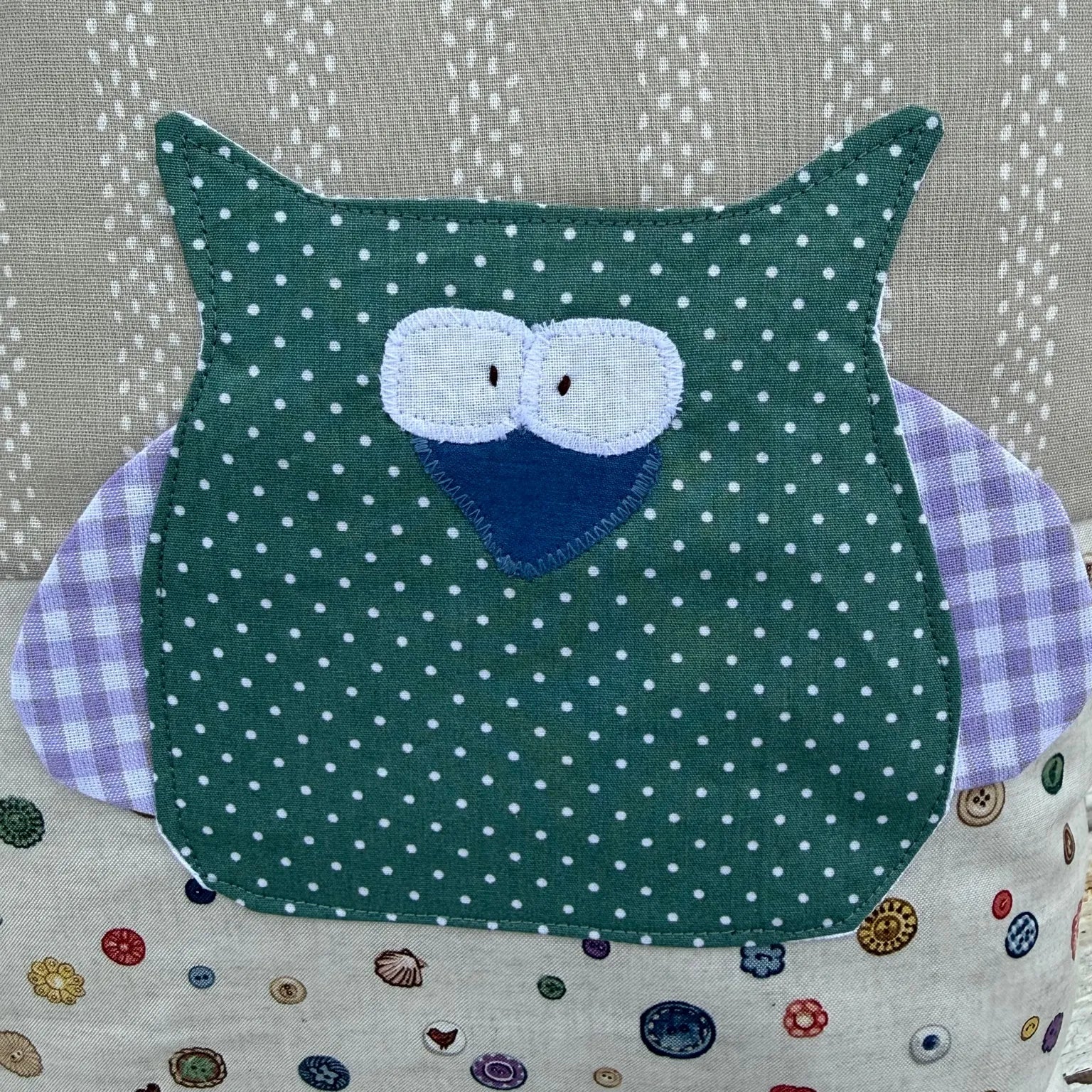 - Motiv: Eule mit applizierten Flügeln und großem Kopf