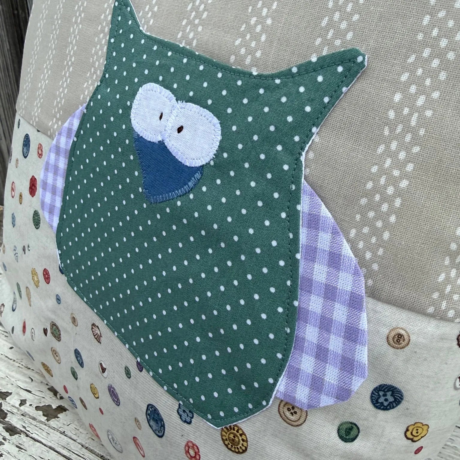 - Zauberhaftes Eulenmotiv mit verspielten Stoffmustern.