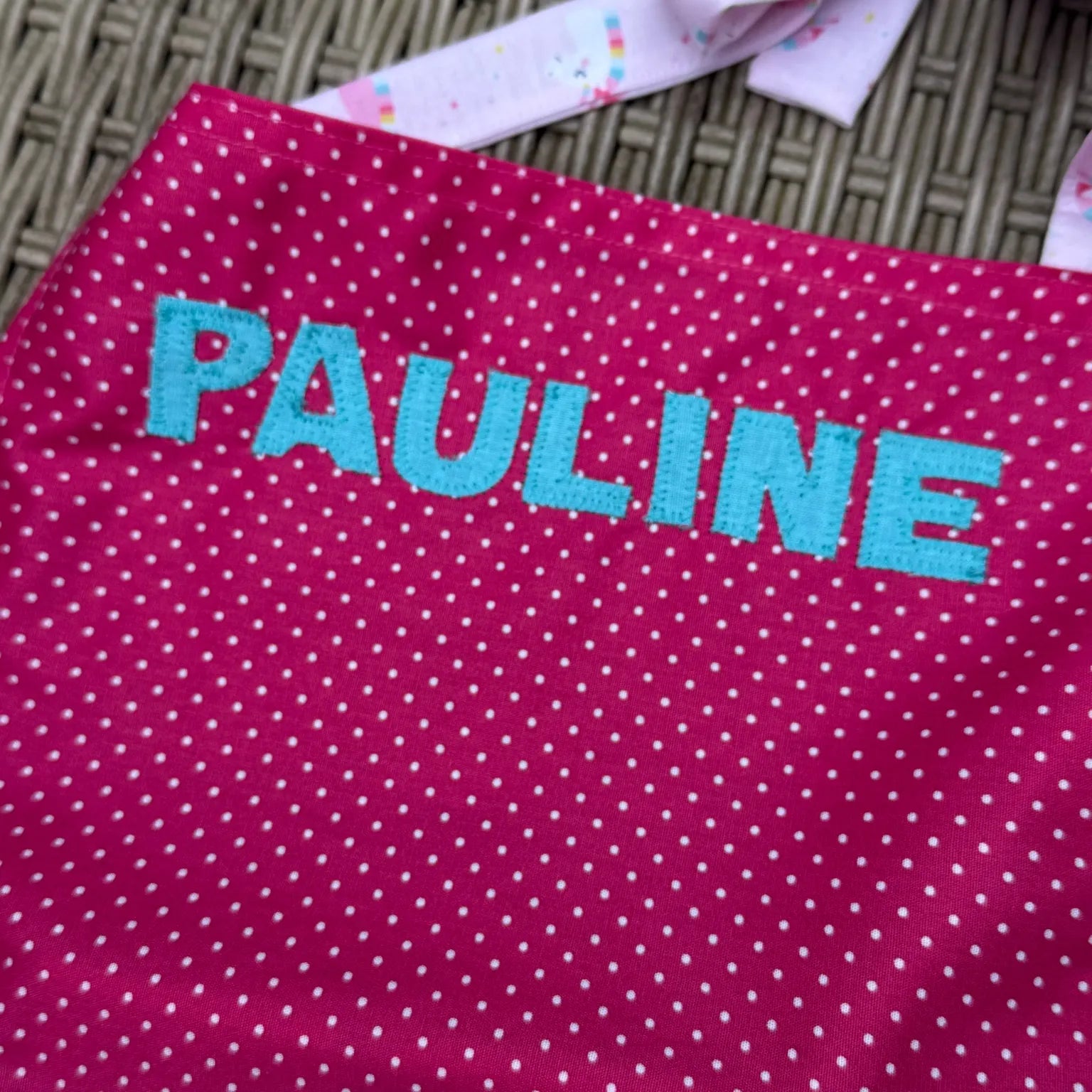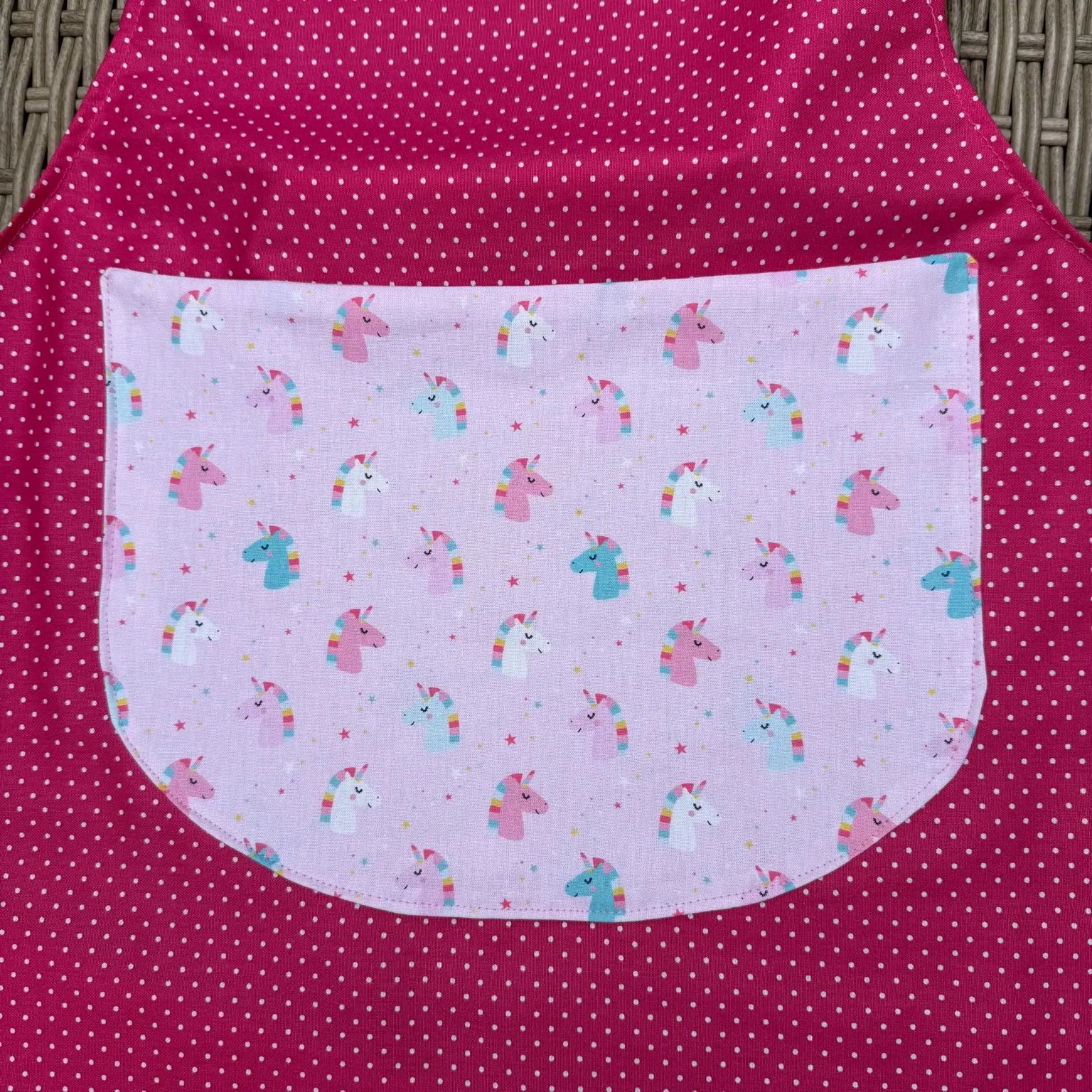 Personalisierte Kinder-Schürze – Einhorn & Punkte | Handmade