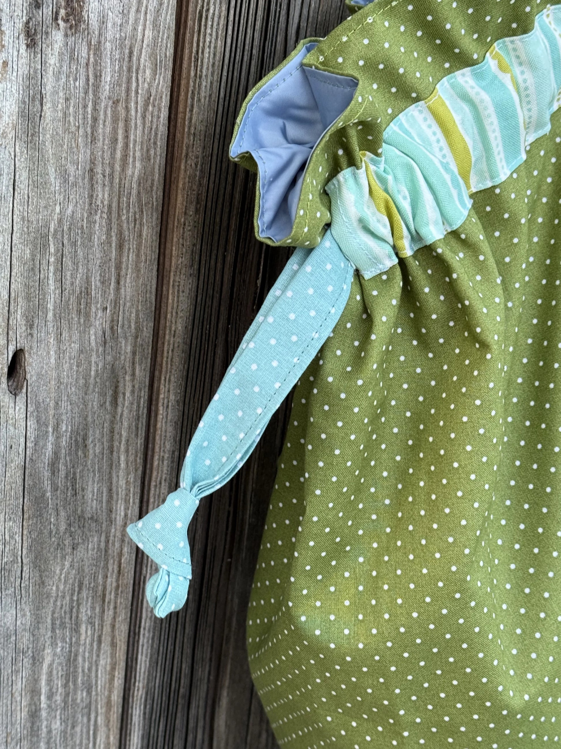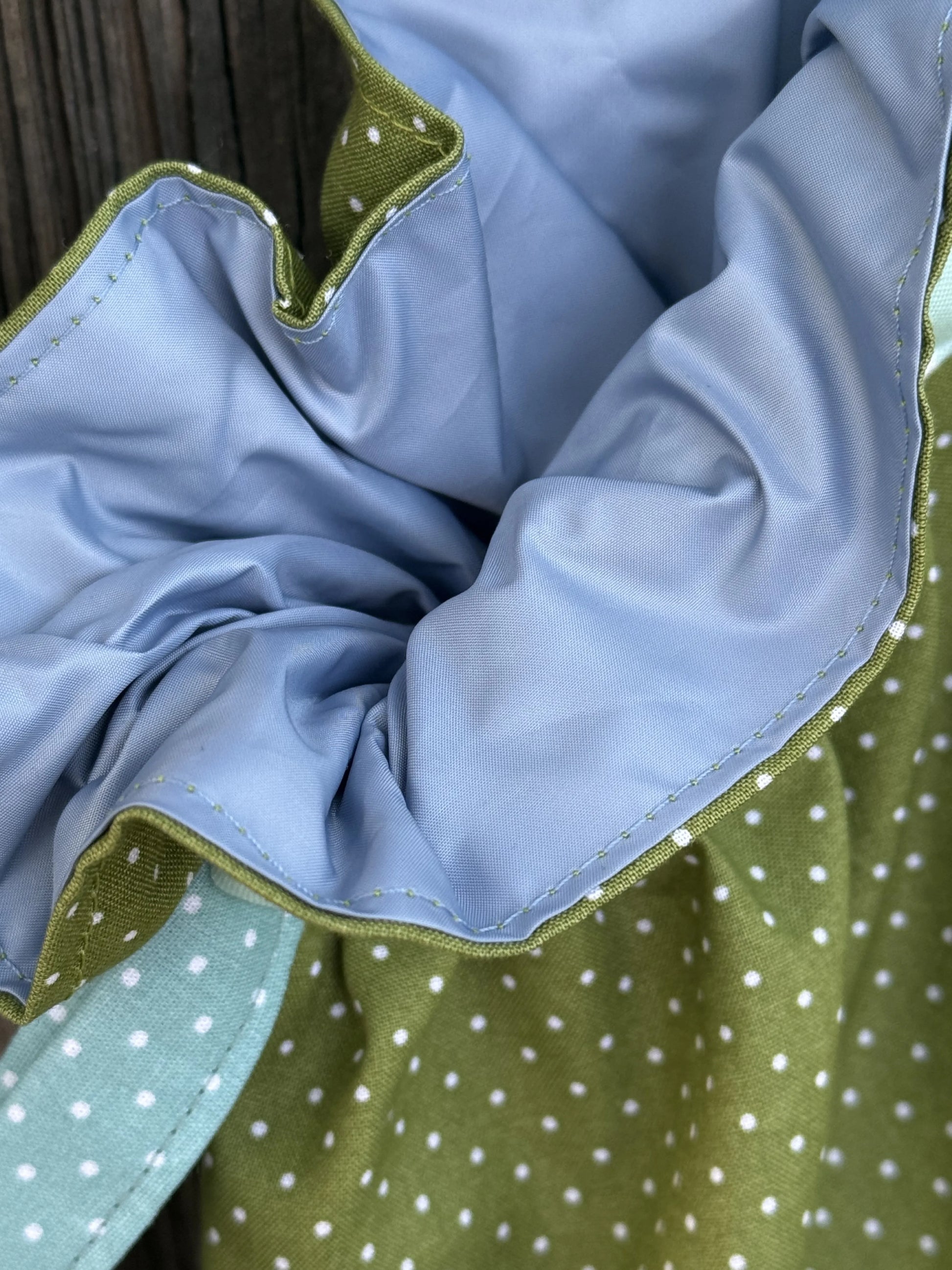 - Außen: Baumwolle (grün mit weißen Punkten)