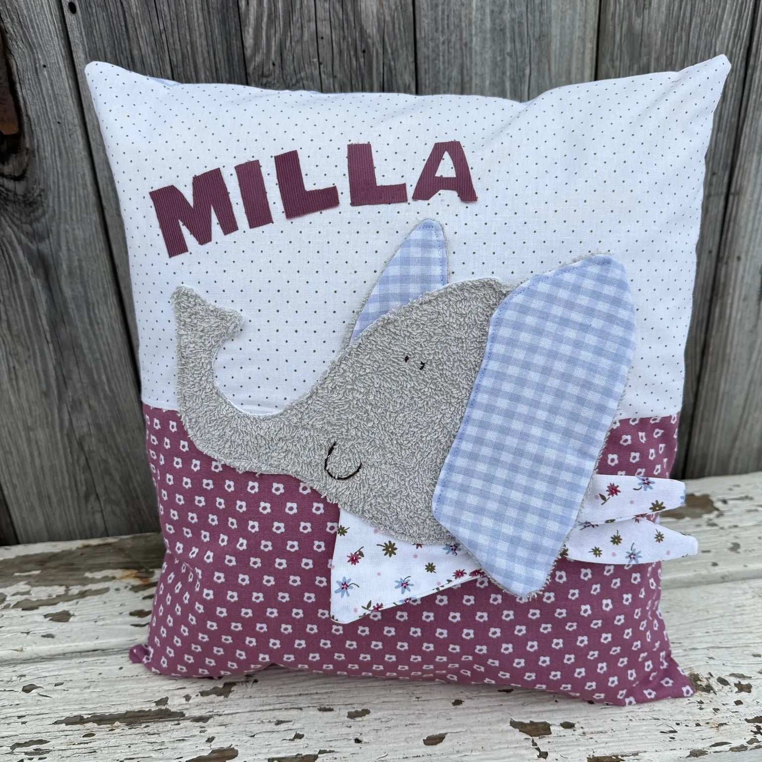 Kissen Elefant – personalisiert mit Namen | Handgenähtes Kinderkissen 40×40